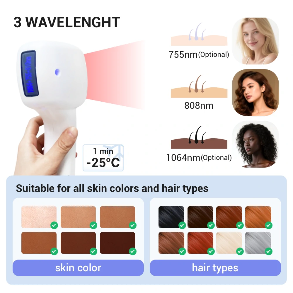 - Diode:Customizable 808nm, 755nm, 940nm, and 1064nm options to perfectly match different skin/hair types.